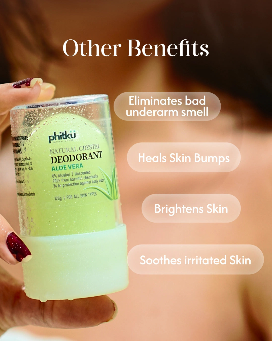 Potassium alum creates a protective layer on the skin that naturally fights odor without relying on artificial scents or chemicals.